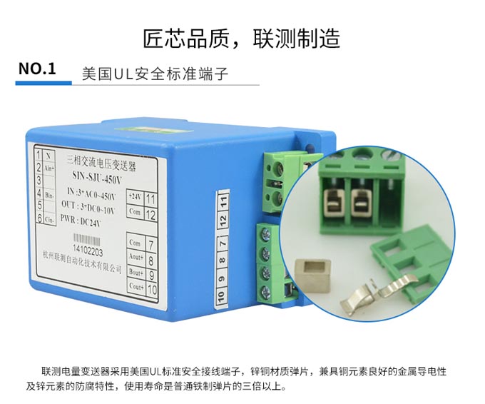 三相電壓變送器采用新型電磁隔離,三相三角形接法交流電壓輸入,用于測(cè)量三相三角形接法交流電壓,特別使用于工頻50Hz正弦波三相三角形接法交流電壓,性能/價(jià)格比,耗電損,體積小,重量輕,安裝簡(jiǎn)便,測(cè)量電壓直接輸入,廣泛用于測(cè)量三相三角形接法交流電壓的場(chǎng)所。